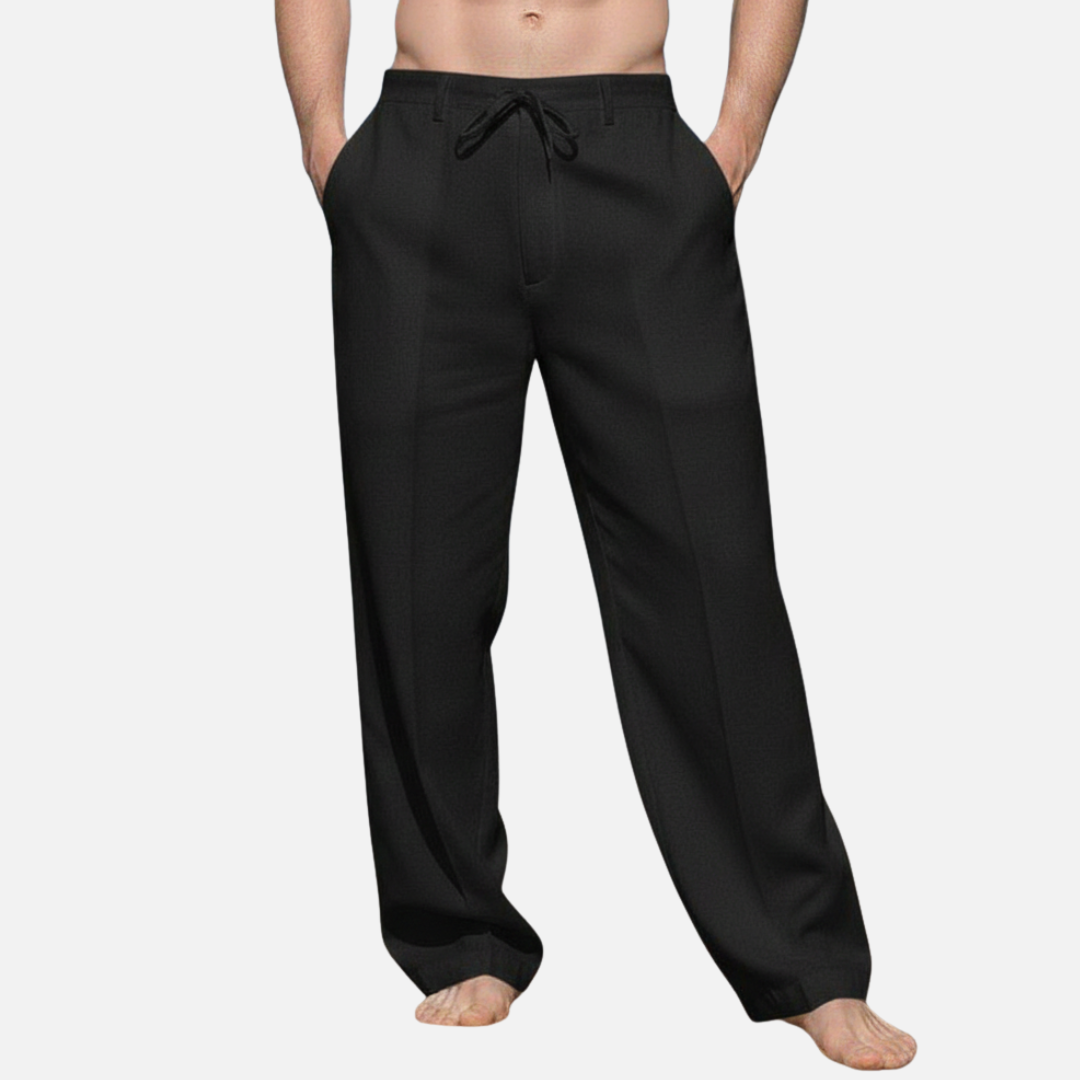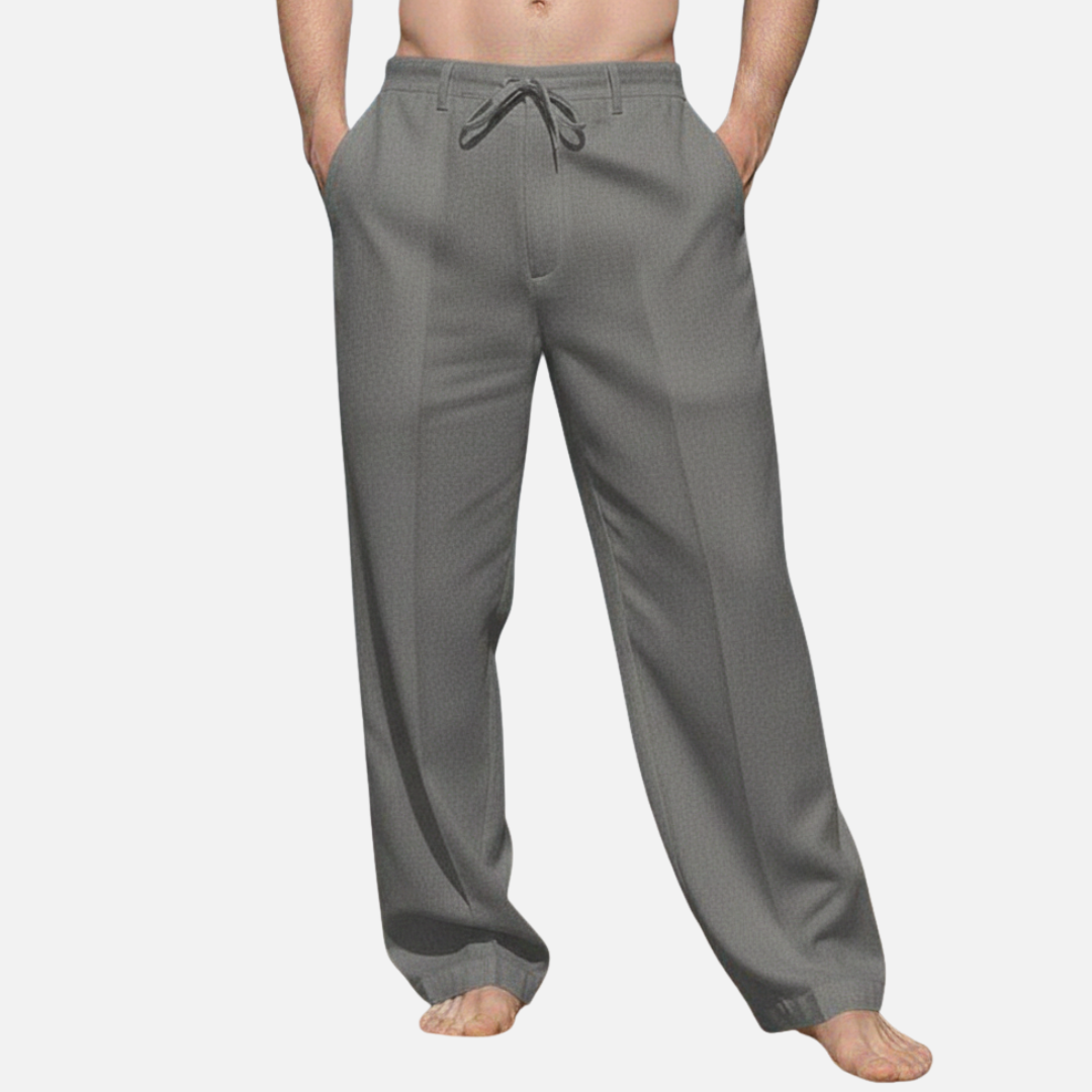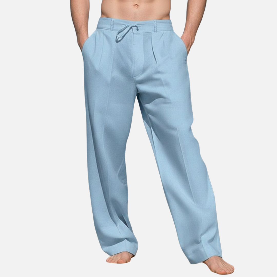 Męskie wiosenne spodnie lniane ze sznurkiem